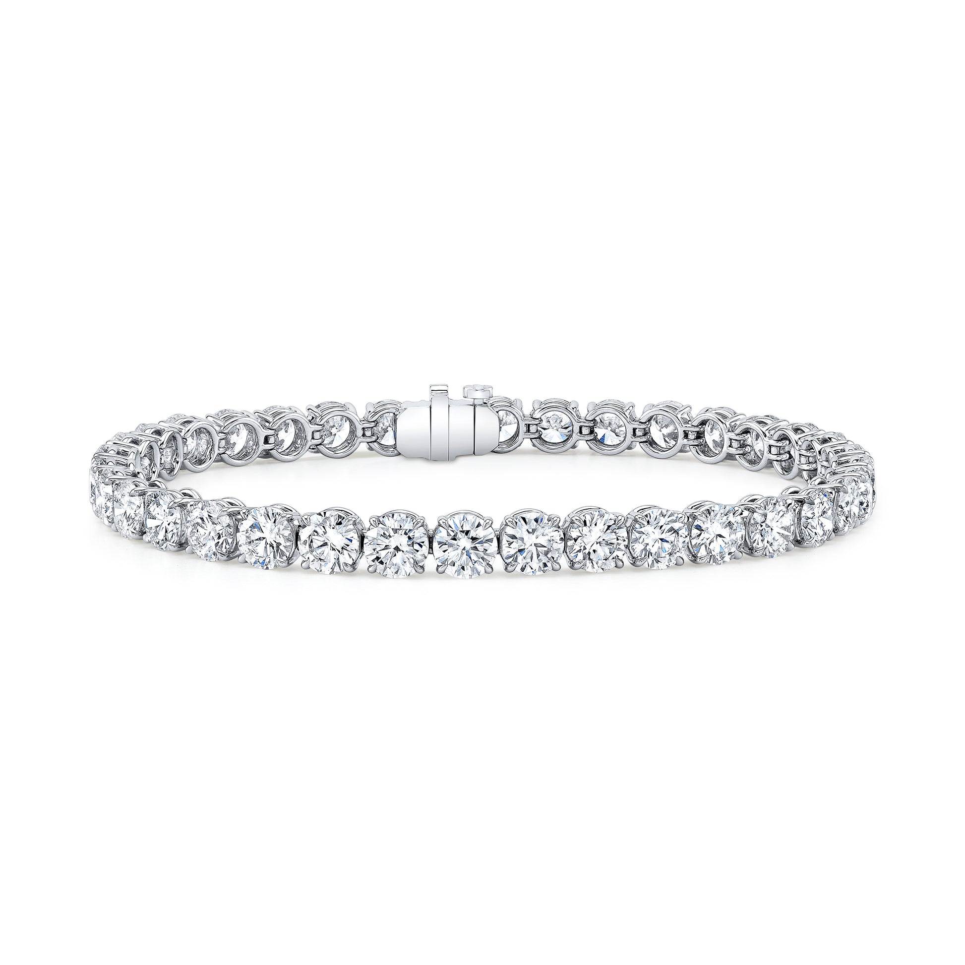 Our classic 4-prong round diamond tennis bracelet features a unique wire basket design for each link that exudes luxury.