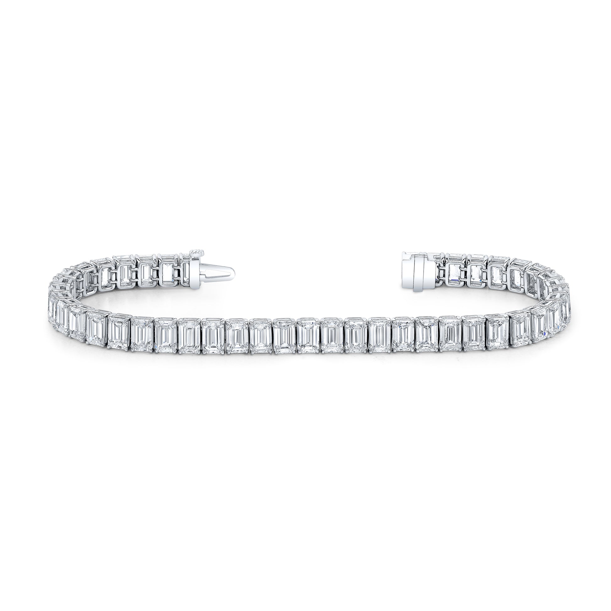 Our emerald cut diamond tennis bracelets feature our unique wire basket design, a timeless classic look.
