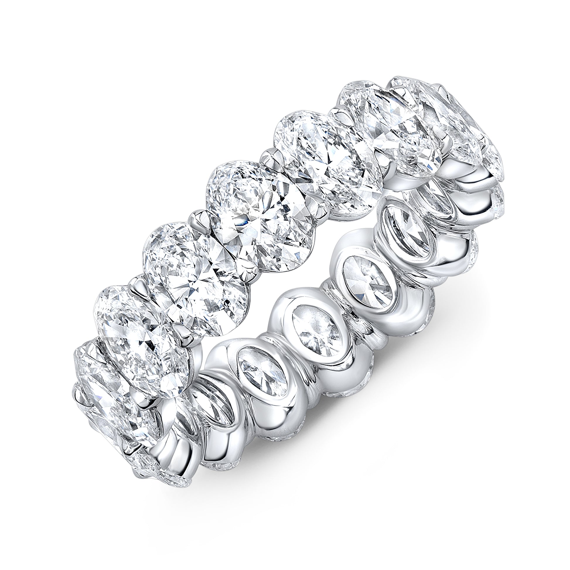 Our beautiful oval eternity band, coming in over 6 carats, is born after finding the perfectly cut oval diamonds. We measure each stone, and create the perfect band.