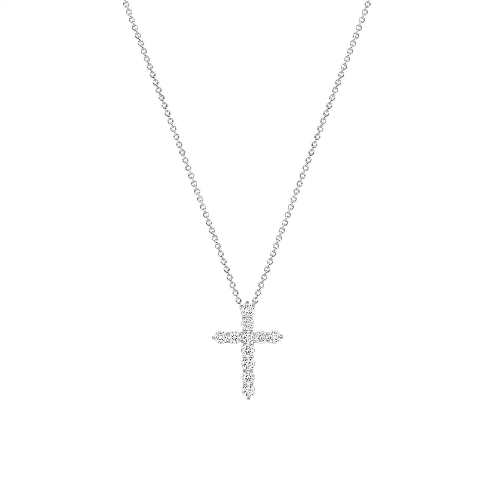 This classic diamond cross pendant brings timeless elegance and beauty to your look. Crafted with a wire basket design, this dainty piece exudes exquisite sophistication with its delicate design.
