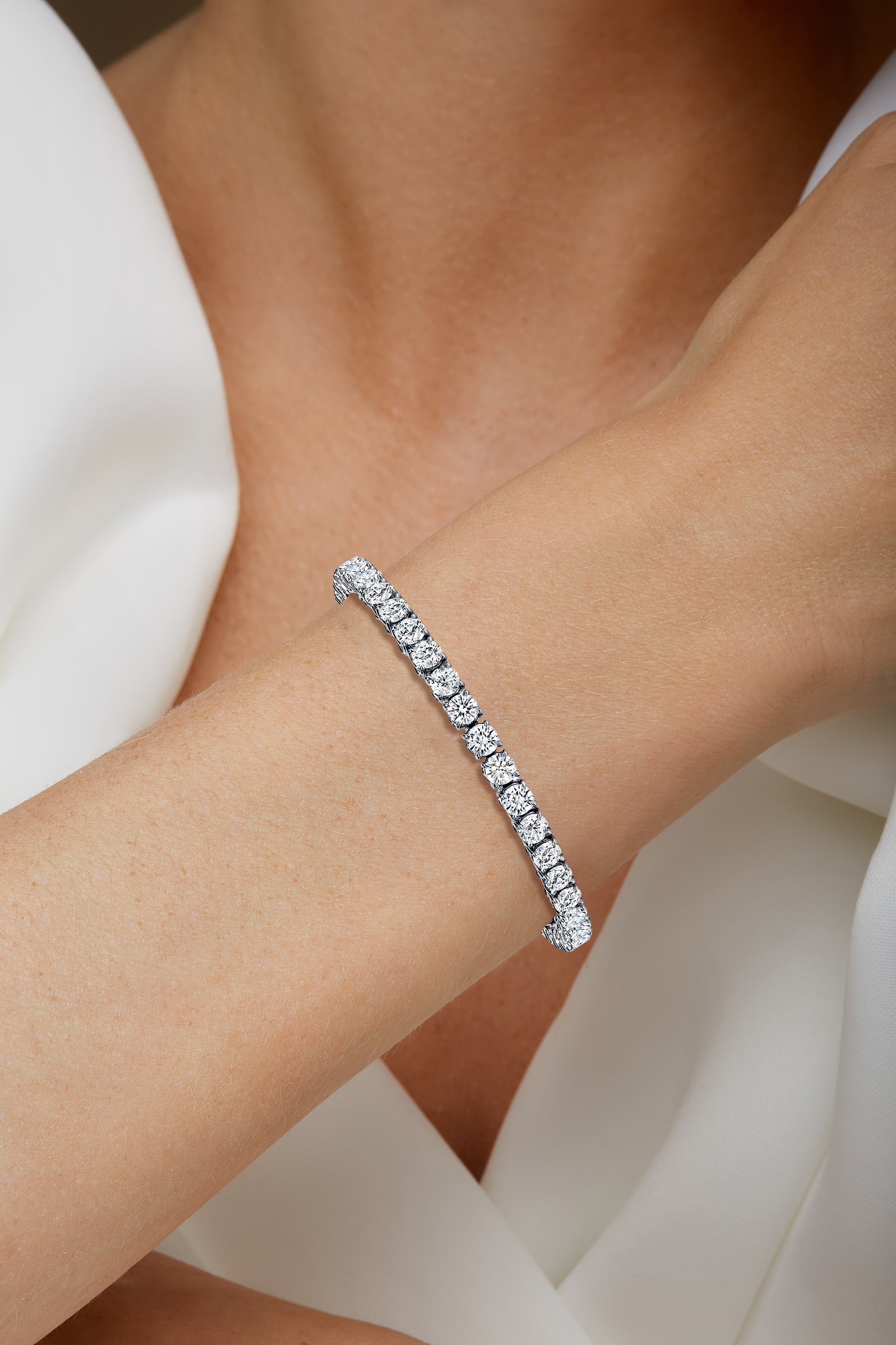 Our classic 4-prong tennis bracelet features a unique wire basket design for each link that exudes luxury.