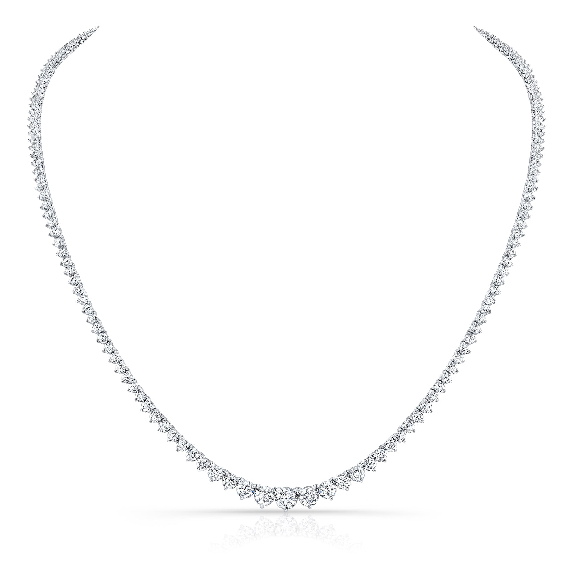 Graceful and luminous, this graduated necklace features a breathtaking arrangement of round-shaped diamonds, each meticulously set to form a cascading silhouette of brilliance. The diamonds gently increase in size toward the center, creating a soft, elegant emphasis along the neckline.
