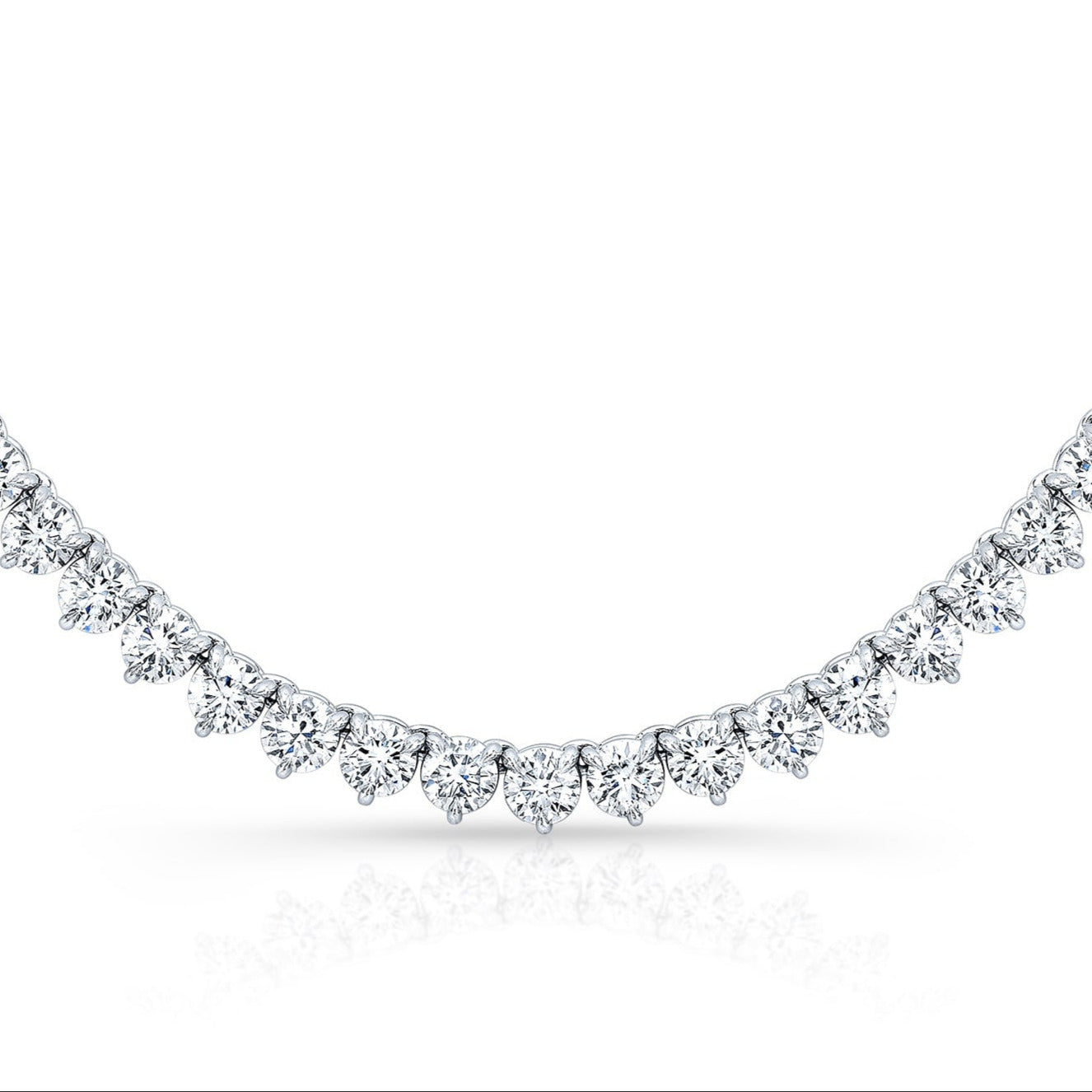 Classic yet captivating, this diamond necklace showcases a seamless row of brilliant round diamonds, graduating gracefully to create a soft, elegant silhouette. Designed to embody timeless sophistication, this piece is a striking statement of enduring beauty.